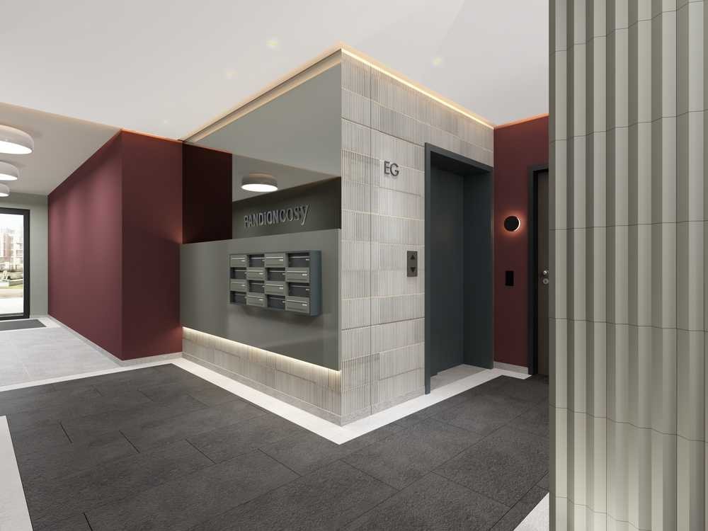 Willkommen im PANDION COSY, einem einzigartigen Wohnquartier in ruhiger Lage an einer Anliegerstraße in zweiter Reihe zur Alsdorfer Straße. Die fünf- und sechsgeschossigen Gebäude bilden gemeinsam mit den drei Punkthäusern ein harmonischen Enseble rund um einen verkehrsfreien Innenhof.