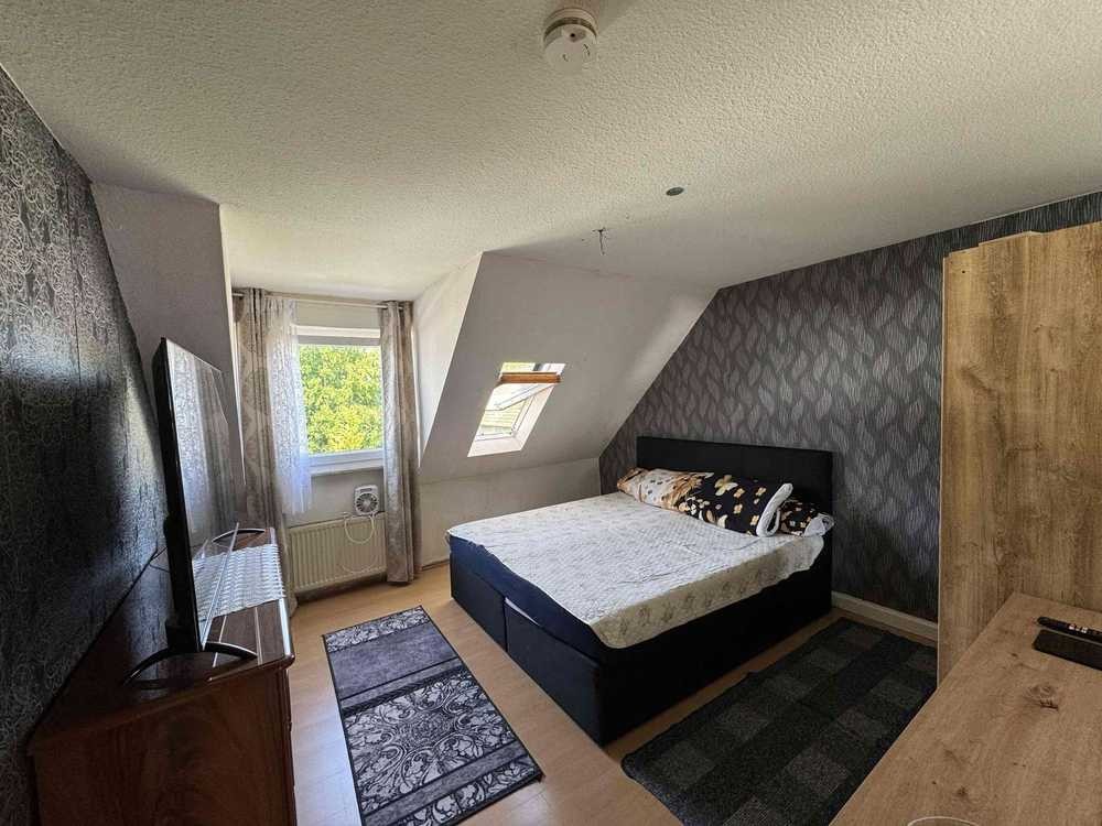 Die Wohnung befindet sich in einem gepflegten Mehrfamilienhaus aus dem Jahr 1976 und liegt im Dachgeschoss. Die lichtdurchfluteten Räume, insbesondere das großzügige Wohnzimmer, schaffen eine freundliche Atmosphäre. Drei Schlafzimmer bieten ausreichend Platz für Familie, Homeoffice oder Gäste.