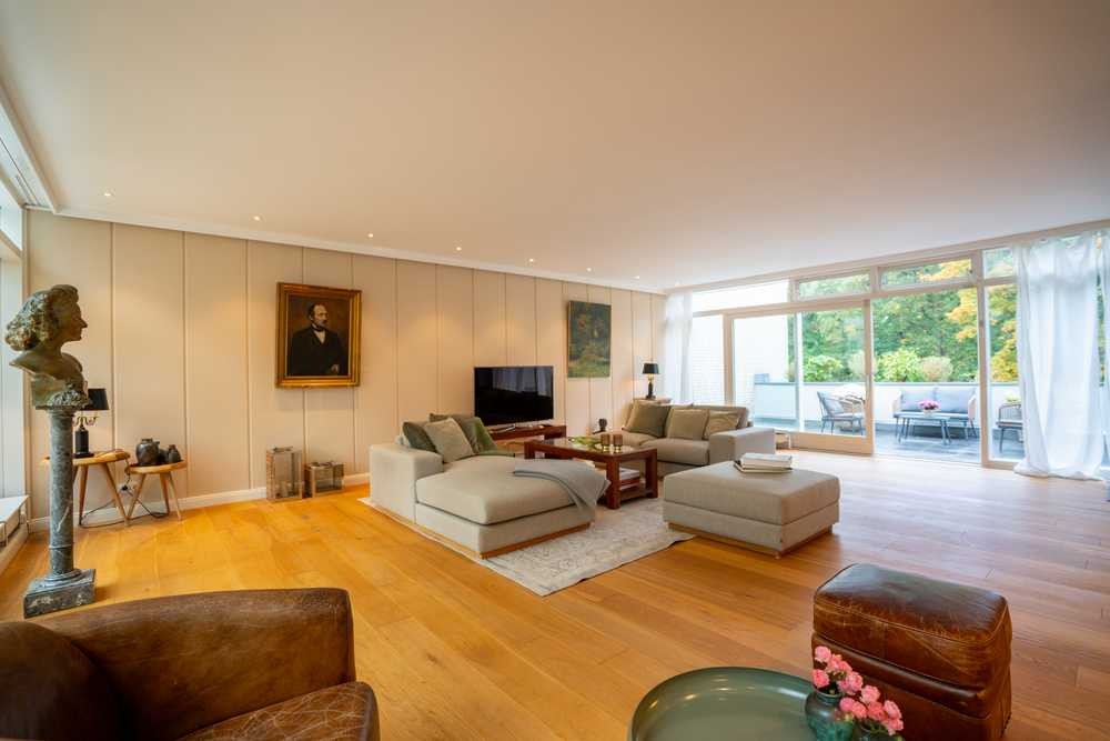 Der weitläufige Wohnbereich mit seinen großzügigen Fensterfronten ist das Herzstück der Wohnung . Durch den hervorragenden Lichteinfall entsteht ein helles, freundliches Ambiente, das dennoch gemütlich und charmant wirkt. Von hier aus gelangen Sie auf die großzügige Terrasse, die für entspannte Stunden im Freien einlädt und einen Blick direkt ins grüne und auf den Alsterwanderweg bietet.