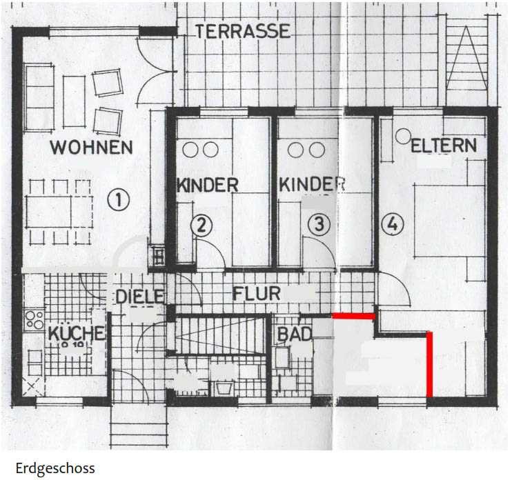 Im rückwärtigen Bereich ergänzen eine Terrasse mit 6 m elektrischer Markise und ein Garten, der mit wenig Aufwand wieder aufblühen kann, das Freiluftangebot.