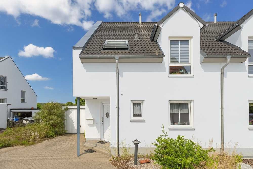 Das rund 283 m² große Grundstück wird optimal genutzt, Terrasse und Garten mit West-Ausrichtung laden zum Entspannen im Freien ein.