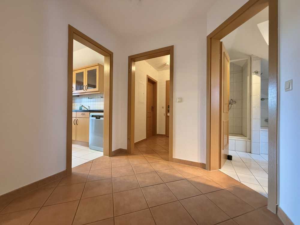 Die angebotene Wohnung befindet sich in einem gepflegten Mehrfamilienhaus aus dem Jahr 1995 und verfügt über eine Wohnfläche von ca. 57 m². Die Wohnung ist gut geschnitten und bietet zwei großzügige Zimmer, eine Küche mit Einbauküche sowie Zugang zum überdachten Balkon. Ein Abstellraum steht ebenfalls zur Verfügung. Das Badezimmer ist großzügig gestaltet und mit Badewanne und Dusche ausgestattet. Ergänzend gibt es ein kleines halbes Zimmer, das sich als Büro oder Ankleide nutzen lässt. Die Ausstattung umfasst Parkettböden in den Wohnräumen und zeitlos gestaltete Fliesen in Bad und Küche. Große Fenster sorgen für gute Lichtverhältnisse. Das Wohnhaus wird regelmäßig instand gehalten. Die Fassade und die Gemeinschaftsflächen wurden zuletzt gestrichen, die Gas-Zentralheizung wurde erneuert. Zur Wohnung gehören ein eigener Kellerraum mit Fenster sowie zwei Tiefgaragenstellplätze in der gemeinschaftlichen Tiefgarage. Ein angenehmes Zuhause für alle, die eine solide, gut aufgeteilte Wohnung in gepflegter Umgebung schätzen.