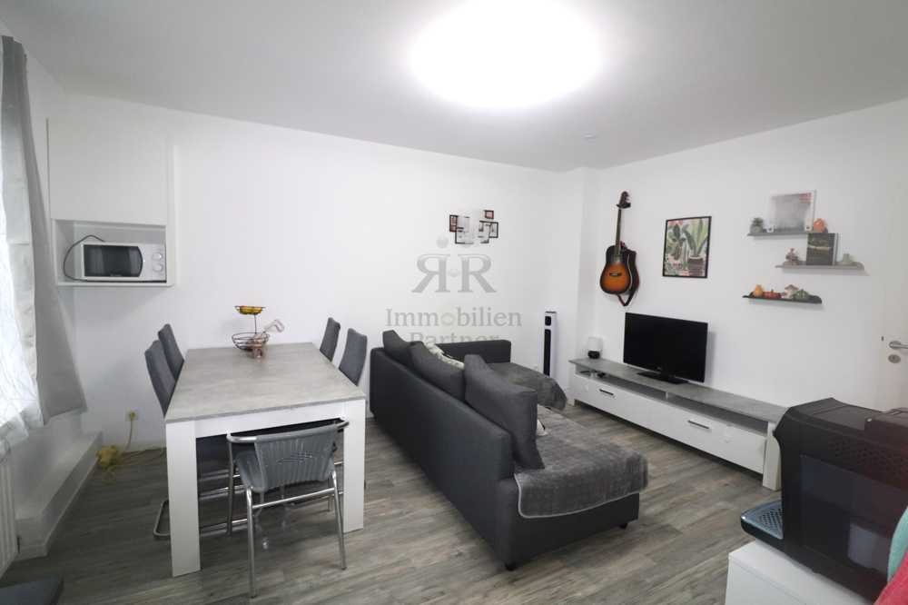 Das Wohnzimmer ist mit einer praktischen Kochnische ausgestattet. Das Schlafzimmer bietet ausreichend Platz, ebenso das Kinderzimmer.
