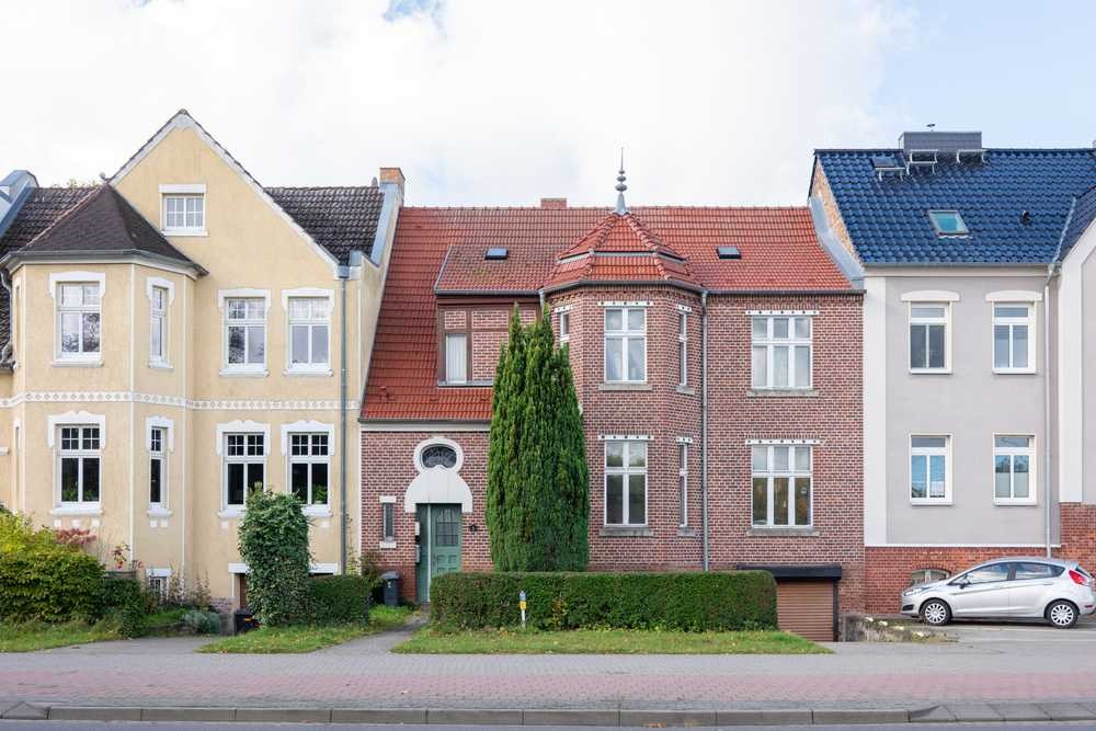 Erwerben Sie ein attraktives Stadthaus mit 2 Wohnungen, von 110 m² im Erdgeschoss und 80 m² im Obergeschoss sowie einen Keller mit Ausgang in den Garten. Jede Wohnung verfügt über 4 Zimmer, Küche, Wannen- bzw. Duschbad und Flur. Die im Erdgeschoss befindliche Wohnung ist zusätzlich mit einem Wintergarten mit anschließender Terrasse, die in den Garten führt, ausgestattet. In allen Räumen sind sehr gepflegte Dielenböden und restaurierte Holzinnentüren. Auch eine historisch restaurierte Hauseingangstür ziert das Gebäude. Das Haus ist in einem sehr gepflegten Zustand. Das Haus hat Tiergarage und zusätzlich einen Stellplatz.
