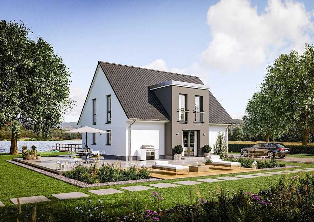 Unser massiv gebautes Alto 630 ist eines unserer beliebtesten Einfamilienhäuser. Auf knapp 145 m² finden Familien mit mehreren Kindern ausreichend Platz. Die Küche und das Wohnzimmer sind offen gestaltet, weiterhin gibt es ein Gästezimmer, welches auch als Büroraum genutzt werden könnte. Mit über 90 Jahren Erfahrung stehen wir Ihnen beim Bau zur Seite und arbeiten mit renommierten Herstellern zusammen, weshalb Sie eine vielfältige Auswahl bei Ihrer Hausgestaltung bekommen. Die Abbildung zeigt eine Ausstattungsvariante.