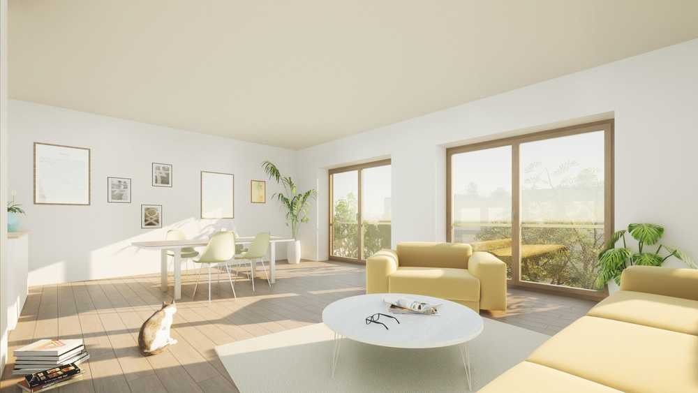 Wohnung & Ausstattung: Wählen Sie selbst, ob Ihre Wohnung im Erdgeschoss mit direktem Gartenzugang (255.000 €) liegt oder im Dachgeschoss mit einem privaten Dachgarten (247.500 €). Alle Einheiten sind barrierefrei zugänglich und damit für jede Lebensphase geeignet. 73 m² Wohnfläche, helles Wohnzimmer mit offener Küche, dazu ein großzügiges Schlafzimmer - alle Räume haben Fußbodenheizung und bodentiefe Fenster. Alles ist barrierefrei geplant: extrabreite Türen, schwellenlose Übergänge, bodengleiche Dusche im Bad. Vom Wohnzimmer gelangen Sie - je nach Lage - direkt in Ihren 122 m² großen Garten. Hier können Sie gärtnern, die Sonne genießen oder mit Ihrem Haustier an der frischen Luft sitzen.