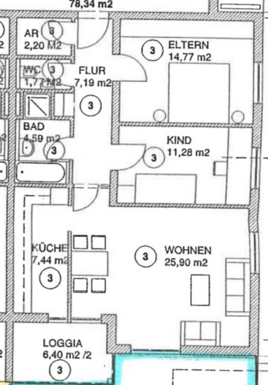 Mit 79m2 Wohnfläche (aufgeteilt auf 3 Zimmer, Küche, Bad, WC, Abstellraum und Flur), einem Balkon, einem Speicherraum und einem Tiefgaragenplatz, bietet diese Wohnung perfekt Platz für Singles, Paare und kleine Familien, die ein Zuhause in ruhiger und dennoch zentraler Lage suchen.