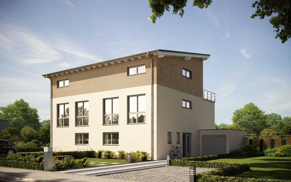 Das Erdgeschoss bietet einen angenehmen Platz für das alltägliche Leben - sowohl für eine 4-köpfige Familie als auch für Paare. Die bodentiefen Fenster spenden viel Tageslicht und bieten ein angenehmes Raumklima. Im Obergeschoss spiegelt sich diese Freundlichkeit in den beiden Räumen wieder, die als Kinder- oder Gästezimmer, aber auch als Home-Office genutzt werden können. Ein eigenes Badezimmer für die Kinder oder Gäste ist ebenfalls vorhanden. Das Dachgeschoss lässt keine Wünsche offen - neben dem großen Schlafbereich gibt es ein eigenes Badezimmer für diese Etage sowie einen Ankleidebereich. Vom Bett aus kann der Hausherr schon am frühen Morgen die Sonne genießen, denn dieses Dachgeschoss bietet einen herrlichen Blick auf die Dachterrasse.