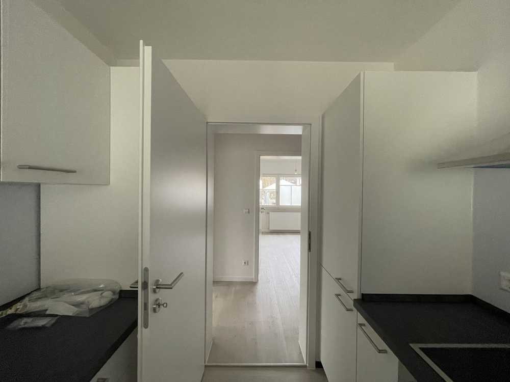 Die Wohnung wurde jetzt erst umfangreich renoviert, besser gesagt saniert. Die Fotos sprechen für sich. Hier hat jemand Wert auf Qualität gelegt, wie wenn er es sich noch einmal beweisen wollte. Alles strahlt in neuem Glanz. Schon bei der Eingangstüre begonnen, die Wohnung hat einen tollen Schnitt. Wenn man reinkommt, geht links das separate WC weg, daneben liegt das neue Bad, welches in sehr harmonischen Farben gestaltet wurde. Es verfügt über eine Badewanne und genügen Platz um sich wohlzufühlen. Der Flur ist lichtdurchflutet und groß, hier sind die ehemaligen Einbauschränke geschmackvoll integriert worden. Auf der rechten Seite befinden sich zwei große Zimmer. Gegenüber liegt die neue Küche. Auch hier wurde auf Qualität geachtet, hochwertige Neff Geräte und angenehme Materialien machen Lust auf schöne Kochabende zu Hause.