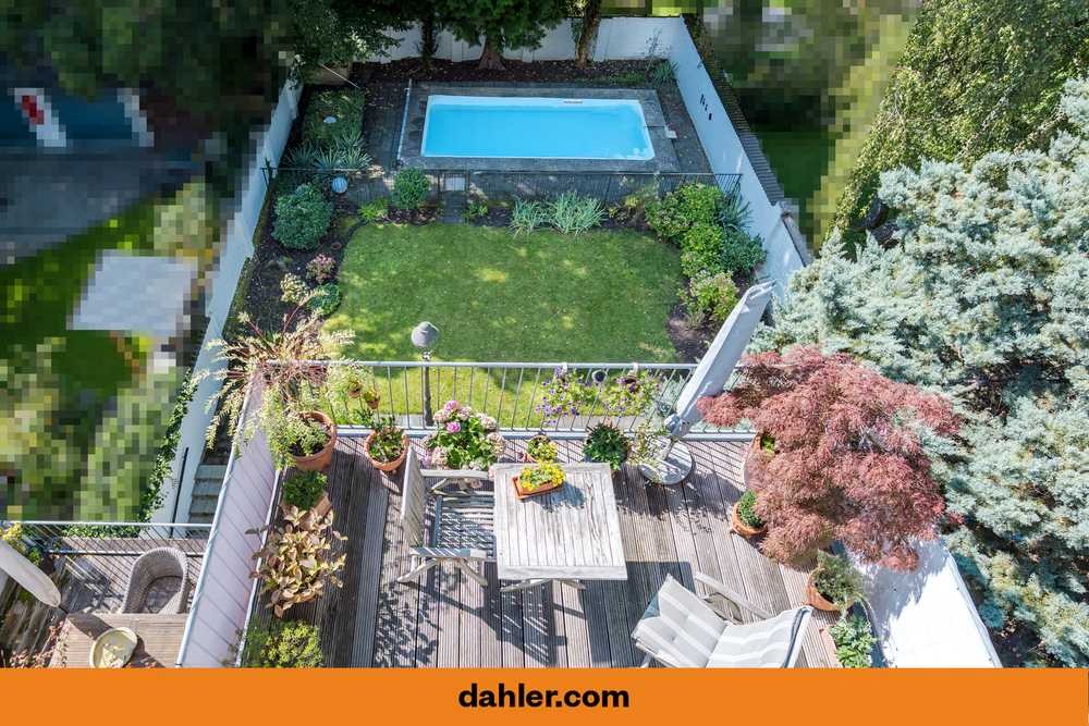 Drei der vier Einheiten sind aktuell vermietet. Die freie Einheit im Erdgeschoss überzeugt mit eigener Terrasse, Garten und Pool – ein seltener Stadt-Luxus. Garage und Stellplatz sind vorhanden.