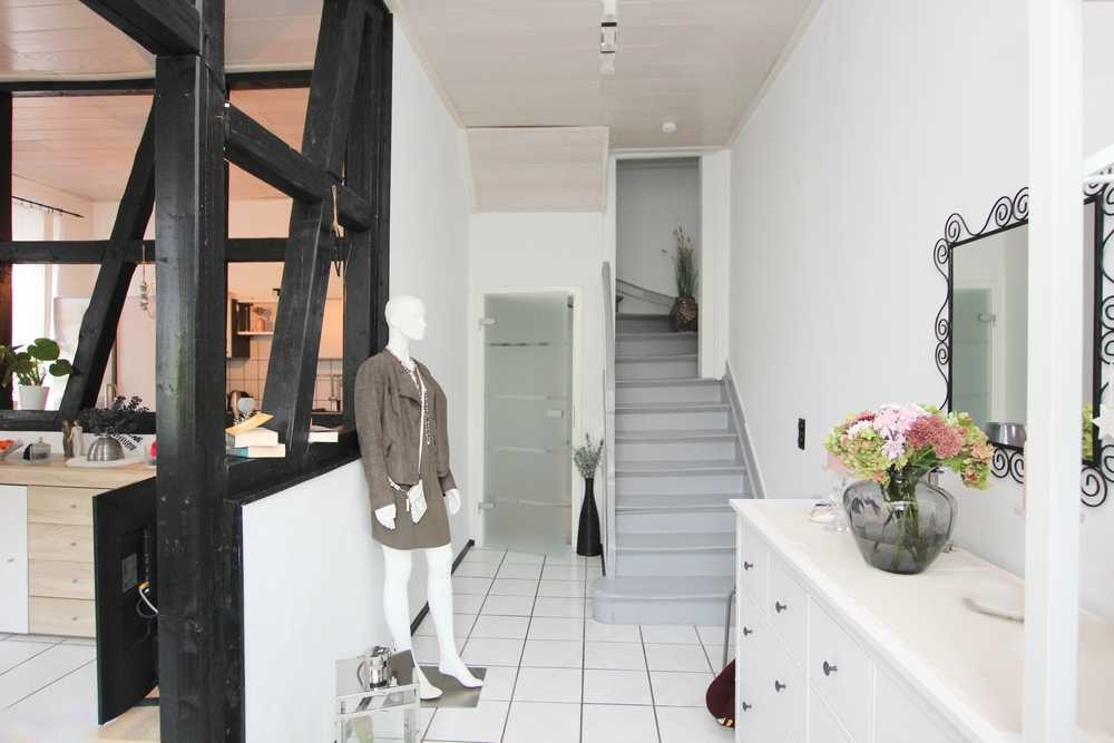 Der vordere Gebäudeteil wurde Anfang der 90er modernisiert und präsentiert sich mit einem offenen Grundriss sowie einem hellen, einladenden Wohnambiente. Durch das freigelegte Fachwerk entsteht eine besondere Mischung aus historischem Charme und zeitgemäßem Wohngefühl - ideal für Liebhaber offener Raumkonzepte.