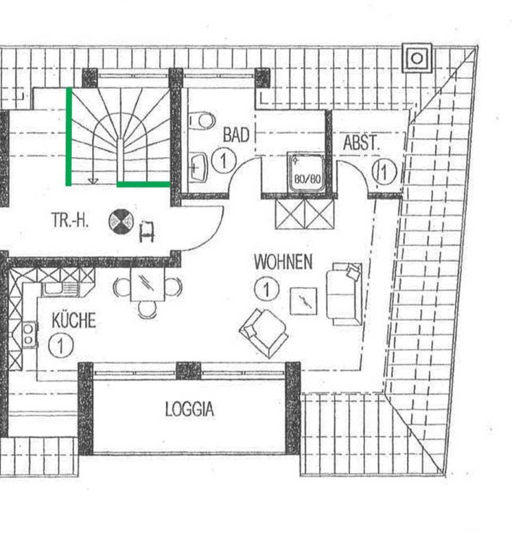 Zum Verkauf steht ein schickes, knapp 30 m² großes 1-Raum Appartment, das zurzeit Teil einer größeren Wohnung ist, die aus zwei Ein-Zimmer-Appartments zusammengelegt wurde.
