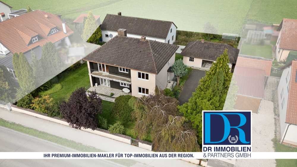 Zum Verkauf steht ein Zweifamilienhaus aus dem Baujahr 1962 in attraktiver Lage von Karlskron. Die Immobilie befindet sich auf einem insgesamt rund 1.345 m² großen Grundstück und bietet nicht nur zwei vollwertige Wohneinheiten, sondern auch die Möglichkeit, in zweiter Reihe ein weiteres Einfamilienhaus zu errichten. Auf diesem hinteren, ca. 680 m² großen Grundstücksbereich befindet sich derzeit ein Nebengebäude mit zwei Garagen, Lagerfläche und einer Werkstatt. Zudem befinden sich am Ende der Einfahrt zwei Garagen sowie eine kleine Werkstatt, die sich ideal als Abstellfläche oder für handwerkliche Tätigkeiten nutzen lassen.