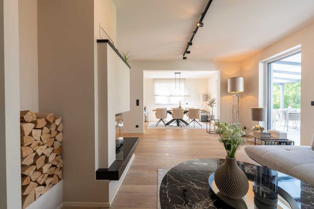 Auf 212 m² Wohnfläche und einem 660 m² großen Grundstück bietet das Haus ein Ambiente, das keine Wünsche offenlässt: Hochwertige Materialien, stilvolle, maßgefertigte Schreinerarbeiten mit indirekter Beleuchtung, ein Dim-to-Warm-Lichtkonzept, ein behaglicher Kamin und eine Klimaanlage schaffen ein harmonisches Zusammenspiel von Stil und Wohlgefühl.
