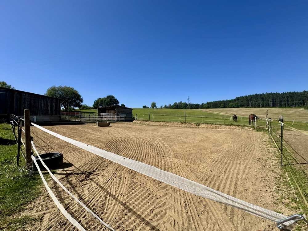 Auf dem rund 3,17 ha großen Grundstück können Stallungen für bis zu sieben Pferdeboxen eingerichtet werden, ein großzügiger Sandreitplatz, Koppeln mit Wolfszaun und Unterstand sowie weitläufige Wiesen für artgerechte Bewegung. Eine Maschinenhalle, ein großes Heulager und eine geräumige Unterstellhalle für Tiere oder Geräte sorgen für optimale Arbeitsabläufe. Für Kleintiere stehen ein Hühnerstall und ein Ziegenstall mit Auslauf bereit.