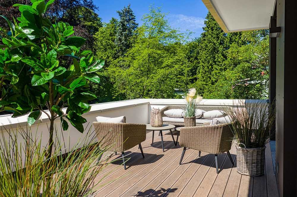 Jede exklusive Wohneinheit verfügt über einen eigenen Außenbereich: sonnige Balkone, private Gärten oder weitläufige Terrassen mit Blick ins Grüne. Die Tiefgarage mit zehn Stellplätzen, teilweise mit E-Ladestationen, sorgt für zusätzlichen Komfort für jeden Eigentümer.