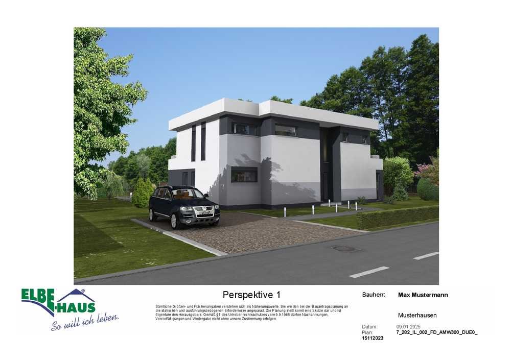Dieses innovative Elbe-Haus® wird in massiver Bauweise von qualifiziertem Fachpersonal errichtet. Wir planen und projektieren nach Ihren Vorstellungen und Wünschen und somit ist wirklich jedes Haus einzigartig. Beachten Sie bitte, dass das abgebildete Haus lediglich ein Bebauungsbeispiel ist. Das Grundstück kann unter Berücksichtigung der örtlichen Bauvorschriften mit Ihrem Wunschhaus von Elbe-Haus® errichtet werden.
