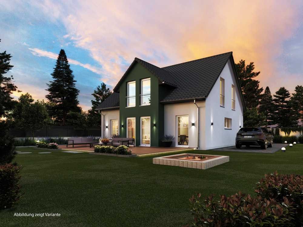 Die modern gestaltete Fassade wird durch zwei französische Balkone sowie die zweifarbige Gestaltung aufgewertet. Der offene Wohn-/Essbereich ist ein Lebensraum, der Träume vom großzügigen Wohnen problemlos erfüllt.