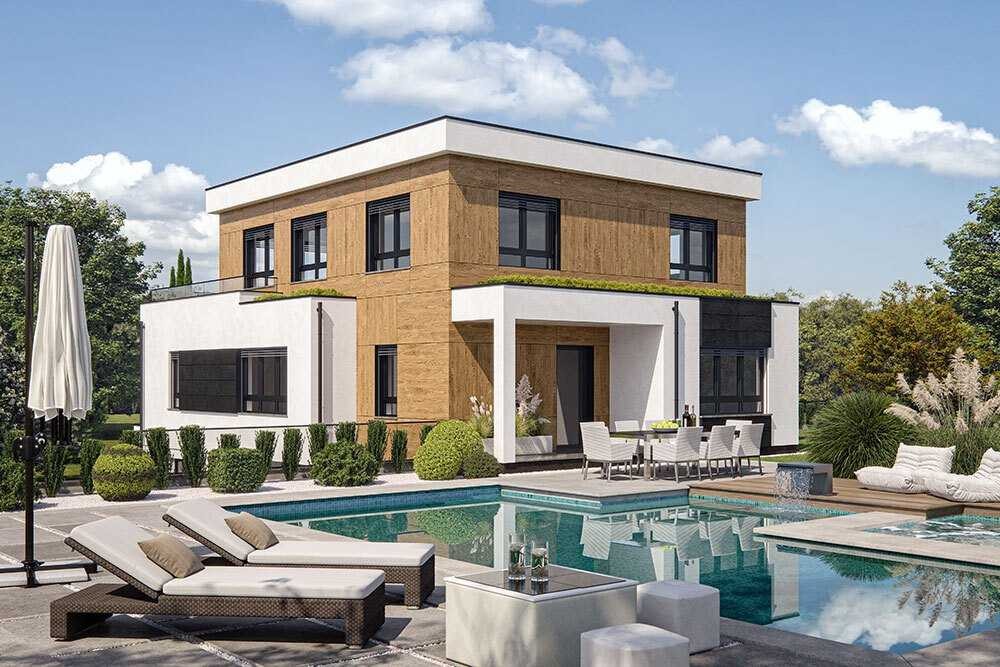 Ungewöhnlich anders, äußerst repräsentativ und sehr flexibel gestaltet sich der Hausentwurf "San Francisco". Mit einem modernen Aufzug aus Stahl und Glas geht es über drei Ebenen hoch hinaus. In der obersten Etage, mit einer beeindruckenden Aussicht, befinden sich die Wohnräume. Als zusätzliches Highlight gibt es hier oben eine großzügige Dachterrasse. Hier lässt es sich herrlich und ungestört relaxen oder mit Familie und Freunden anspruchsvoll feiern.
