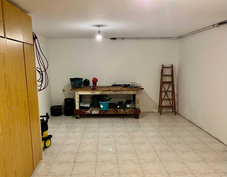 Das Haus verfügt über zwei Garagen sowie einen Schuppen und einen Balkon mit Weitblick.