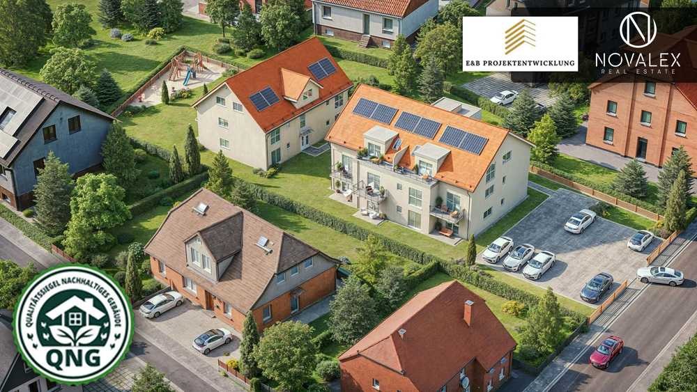 Erleben Sie modernes Wohnen mit einem klaren Fokus auf Nachhaltigkeit, Energieeffizienz und Wohnkomfort. Dieses exklusive Wohnprojekt wird in massiver Holzbauweise errichtet – ein Baustoff, der Natürlichkeit, Langlebigkeit und ein gesundes Raumklima vereint. Dank der energieeffizienten KfW-40-QNG-Bauweise profitieren Sie von einem zukunftssicheren Energiekonzept mit Wärmepumpe und Photovoltaik-Unterstützung – für niedrige Betriebskosten und eine nachhaltige Lebensweise. Jede Wohnung wird schlüsselfertig übergeben und überzeugt durch eine hochwertige Ausstattung: Behagliche Fußbodenheizung, dezentrale Lüftungsanlage mit Wärmerückgewinnung sowie Warmwasserbereitung über moderne Durchlauferhitzer sorgen für höchsten Wohnkomfort. Elektrische Außenrollläden, eine Videogegensprechanlage und der Glasfaseranschluss runden die moderne Ausstattung ab. Im Außenbereich erwarten Sie angelegte Grünflächen und – für Erdgeschosswohnungen – eigene Gartenbereiche zum Entspannen. Ein eigener Pkw-Stellplatz sowie ein Fahrstuhl bieten zusätzlichen Komfort und Barrierefreiheit. Ein Zuhause, das Stil, Komfort und Nachhaltigkeit perfekt vereint.