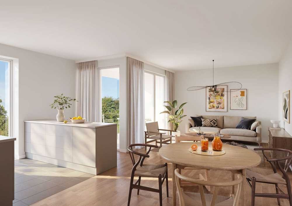 Dank der variantenreichen Grundrissgestaltung können Sie Ihre Wohnung nach eigenen Wünschen anpassen und den Wohnraum ideal auf Ihre Bedürfnisse abstimmen. In den meisten Bädern erwartet Sie eine bodengleiche Dusche und eine Badewanne, um Ihren Start in den Tag angenehm zu gestalten. Der hohe Wohnkomfort wird durch hochwertige Laminat- und Vinylböden sowie Fußbodenheizung unterstützt. In den Küchen und Bädern wurden Fliesen verlegt, während Parkettböden auf Wunsch gegen Aufpreis möglich sind.
