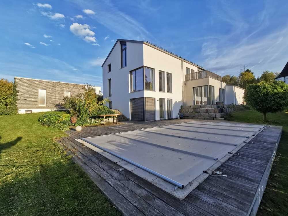 Dieses freistehende Einfamilienhaus in Oberdorfen begeistert nicht nur mit seiner Split-Level-Architektur, sondern auch mit einer Wohnatmosphäre, die sich kaum in Worte fassen lässt. Hier wohnen Sie nicht einfach – Sie leben. Offen, hell, großzügig – von jedem Stockwerk ist der Horizont auszumachen. Versetzte Ebenen (die einzelnen Wohn-, Ess- und Schlafbereiche befinden sich auf separaten Ebenen, die um eine halbe Geschossdecke zueinander versetzt und durch offene Treppen miteinander verbunden sind) und weite Sichtachsen lassen Raum zum Atmen und zum Träumen.