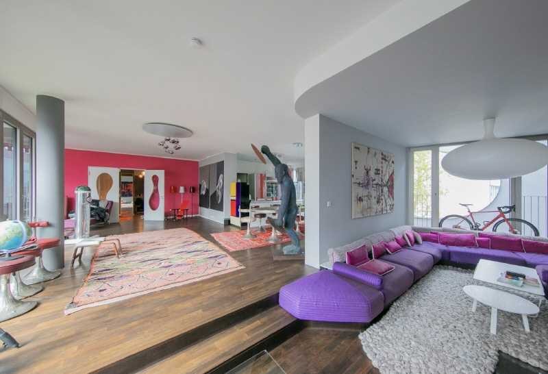 Jede Wohnung hat einen organisch geformten, abgesenkten Loungebereich. Im Gegenzug dazu findet man Absenkungen aus den darüber liegenden Wohnbereichen an den Decken als skulpturale Elemente.