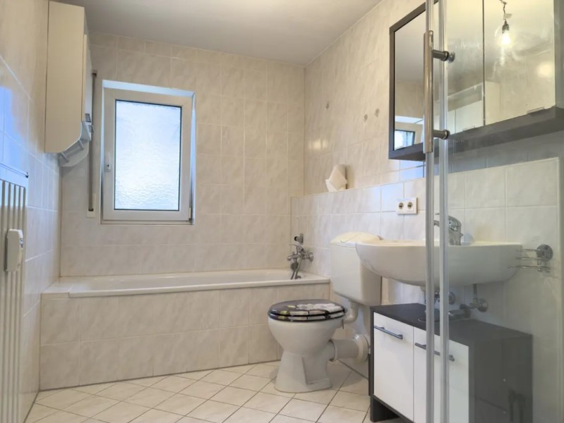 Das Tageslichtbad verfügt über Badewanne, Dusche und Fenster und sorgt damit für Komfort im Alltag.