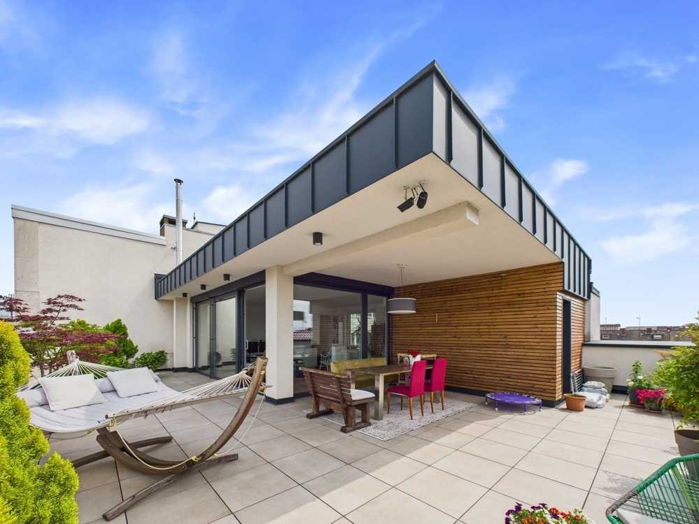 Diese außergewöhnliche Penthousemaisonettenwohnung bietet urbanes Lebensgefühl mit höchstem Anspruch an Stil, Qualität und Komfort. Auf großzügigen ca. 175 m² Wohnfläche und zwei Ebenen, mit einer 60 m² großen Terrasse, erleben Sie eine durchdachte Raumaufteilung mit hochwertiger Ausstattung. Die Wohnung wurde 2015 umfassend kernsaniert, wobei die obere Etage neu aufgestockt wurde. Gleichzeitig wurde das gesamte Gebäude energetisch modernisiert.