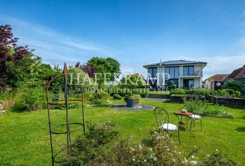 Bereits beim Betreten des Hauses empfängt Sie ein lichtdurchfluteter, großzügiger Eingangsbereich, der fließend in den offen gestalteten Küchen- und Wohnbereich übergeht. Die stilvolle weiße Schleiflack-Einbauküche mit hochwertiger Markentechnik und großzügigem Kochtresen wird zum Herzstück des Familienlebens für geselliges Kochen und Genießen. Der angrenzende Essbereich na...