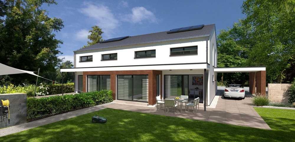 Hier entstehen individuell geplante Doppelhaushälften, die moderne Architektur mit durchdachten Grundrissen verbinden. Jede Einheit verfügt über eine sonnige Terrasse, die zum Entspannen im Freien einlädt, sowie über einen praktischen Carport direkt am Haus. So genießen Sie Wohnkomfort auf hohem Niveau in Ihrem eigenen Zuhause."
