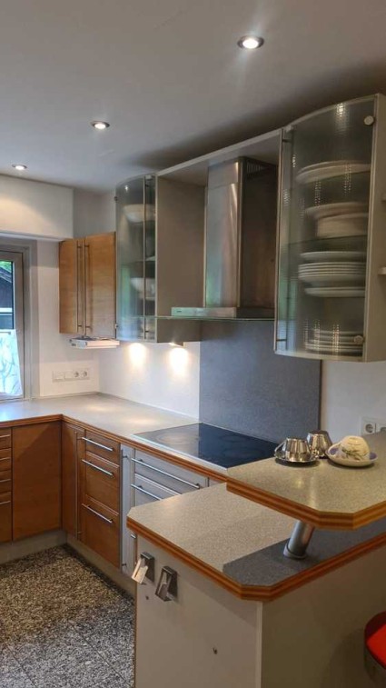 Die Einliegerwohnung (ca. 75 m²) wurde 2001 renoviert und 2006 modernisiert. Sie überzeugt mit einer durchdachten Raumaufteilung: Eingangsbereich mit direktem Zugang zum Badezimmer, ein heller Wohn- und Essbereich mit offener Küche (8,3 m²) und Zugang zur Terrasse sowie zwei weitere Zimmer zur flexiblen Nutzung. Die Wohnung wird zum 31.12.2025 frei und eignet sich ideal als Gästewohnung, Ferienwohnung oder zur Vermietung.