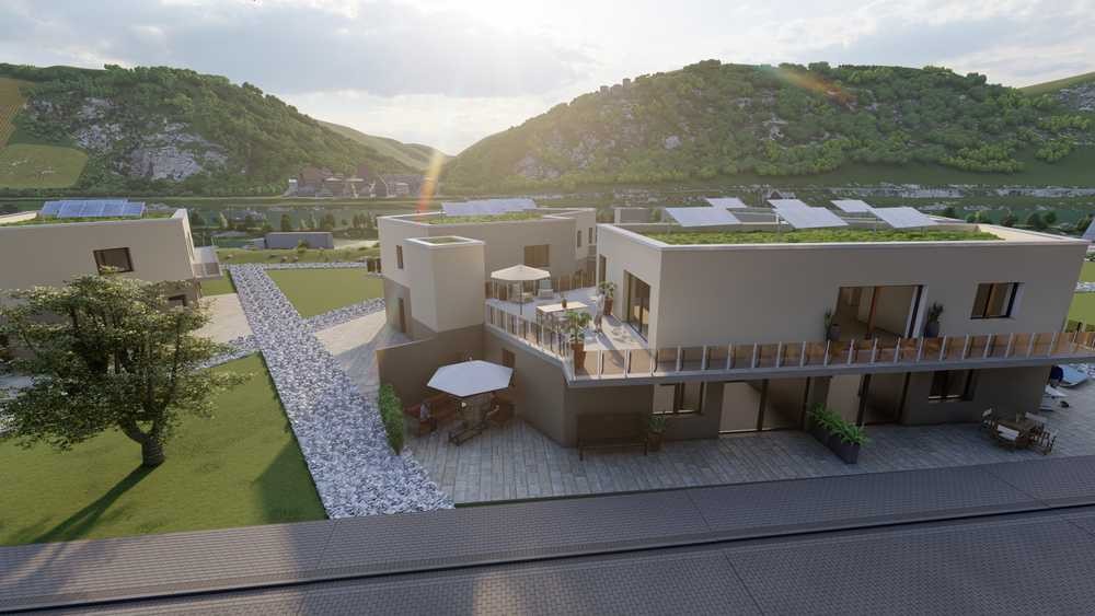 - das Projekt umfasst 5 wabenförmige Häuser mit insgesamt 40 Apartments