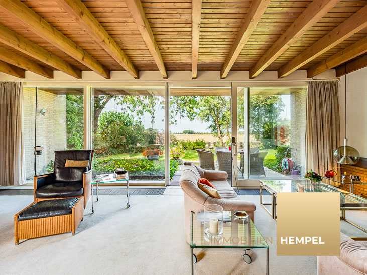 Dieser freistehende Bungalow im großzügigen Stil der 1960er Jahre präsentiert sich nach außen hin zurückhaltend und diskret. Im Inneren erntaltet er mit dem Blick in die weite Landschaft eine überraschende Großzügigkeit. Das Haus wurde von einem Architekten als persönliches Zuhause geplant und erbaut, mit viel Liebe zum Detail und einem offenen, lichtdurchfluteten Grundriss.