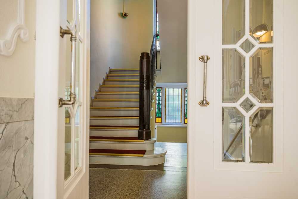 Bereits beim Betreten des Gebäudes vermittelt das eindrucksvolle Entrée den repräsentativen Charakter der Liegenschaft. Aufwendig gestaltete Deckenmalereien mit Stuckelementen in barockisierender Jugendstilform, gut erhaltene Marmor- und Terrazzo-Böden sowie ein stilvolles Treppenhaus mit Bleiglasfenstern unterstreichen den hohen architektonischen Anspruch und die historische Wertigkeit des Hauses – ein Ausstattungsniveau, das sich heute kaum noch herstellen lässt und langfristig den Substanzwert sichert.