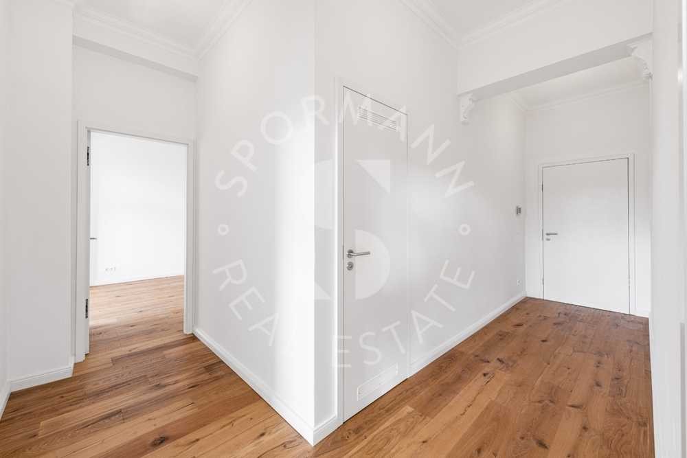 Auf rund 75 m² wurde mit außergewöhnlicher Sorgfalt und Sinn für Ästhetik ein Lebensraum geschaffen, der Historie und Gegenwart auf faszinierende Weise vereint. Die Wohnung wurde gerade aufwendig kernsaniert – und das Ergebnis ist eine harmonische Komposition aus traditionellen Details und luxuriösem Neubaukomfort.