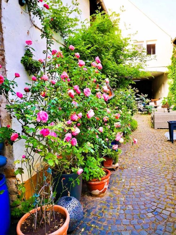 Einfamilienhaus (ehemaliges Bauernhaus) im typischen regionalen pfälzischen Stil, mit einem in kleinen Kopfsteinen gepflasterten Innenhof und ca. 410 m² baureifen Land.