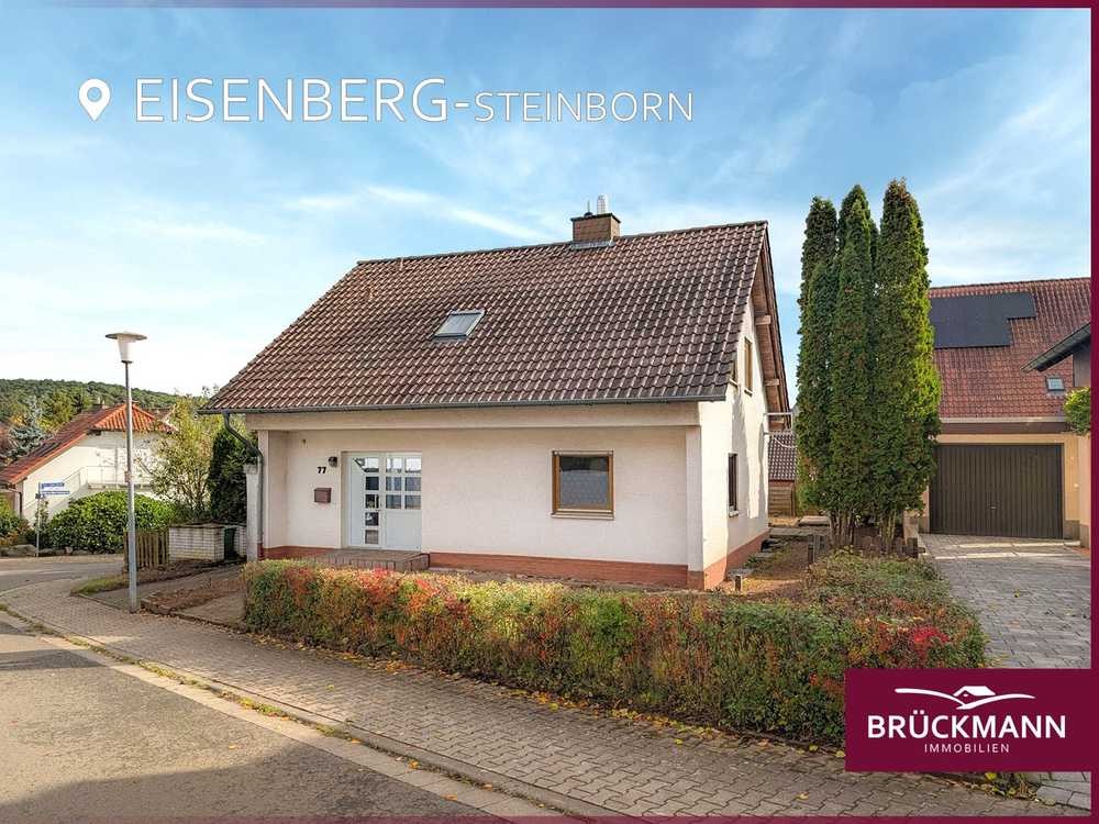 Das freistehende Einfamilienhaus aus dem Jahr 1990 steht in ruhiger Wohnlage von Eisenberg-Steinborn, nur wenige Gehminuten vom Ortszentrum entfernt. Mit rund 110 m² Wohnfläche und zusätzlich nutzbarem Keller bietet es ausreichend Platz für eine Familie mit bis zu drei Kindern. Der funktionale Grundriss, die solide Massivbauweise und die klare Aufteilung schaffen eine gute Wohnstruktur ohne überflüssige Wege. Große Fenster lassen viel Tageslicht herein, während der Garten nach Südosten ausgerichtet ist – ideal für Frühstück im Freien oder das Spielen der Kinder. Die Ausstattung umfasst ein Tageslichtbad mit Wanne und Dusche, ein separates Gäste-WC sowie eine moderne Brennwertheizung und eine großzügig dimensionierte Solarthermieanlage (geringe Heizkosten!). Eine umfassende Netzwerkverkabelung und eine lange, beheizte Garage mit Wasser- und Stromanschluss ergänzen das Angebot. Das Haus zeigt seine Spuren der Zeit, ist aber technisch solide (teilweise bemerkenswert) und weitgehend instandgehalten – ein Haus, das man gründlich reinigen muss, aber dann optisch ganz nach persönlichen Vorlieben gestalten und dann (je nach Budget) Schritt für Schritt modernisieren kann!