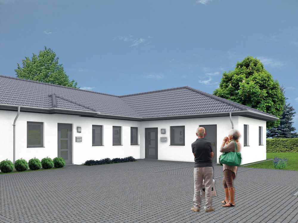 Immer wieder werden Kundenwünsche nach barrierefreiem Wohnen in angenehmer Hausgemeinschaft an uns herangetragen. Hier reihen sich vier Bungalows aneinander und bieten jungen wie älteren Menschen Platz zum Leben. Zu jedem Bungalow gehört eine Terrasse sowie ein eigener Gartenanteil. Die Innenausstattung können Sie sich im Rahmen der Bauleistungsbeschreibung selbst aussuchen. Eigenleistungen wie Maler- und Bodenarbeiten können eingebracht werden.