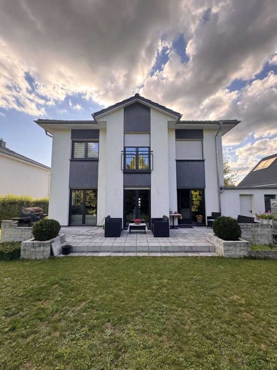 Willkommen in Ihrem Rückzugsort: Diese Neubauvilla (Baujahr 2016/2017, Massivbau) verbindet klare Architektur mit viel Tageslicht und einem außergewöhnlich schönen, eingewachsenen Garten. Auf ca. 175 m² Wohnfläche verteilen sich zwei Vollgeschosse mit 5 Zimmern (davon 4 Schlafzimmer).