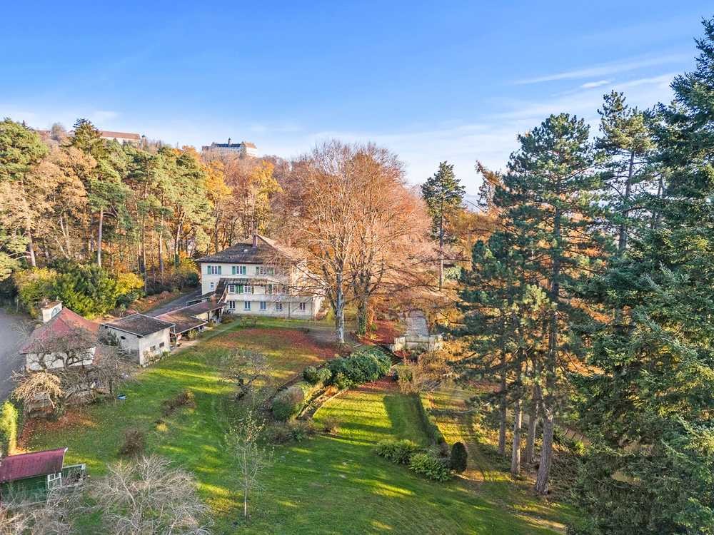 Dieses herrschaftliche Anwesen mit der charakteristischen Jugendstilvilla, die circa im Jahr 1920 erbaut wurde, verkörpert Charme und Eleganz vergangener Zeiten. Das großzügige Entrée, die historischen Elemente wie die Holzvertäfelungen, die Stuckdetails und die hohen Decken tragen zu dem besonderen Charakter der Liegenschaft bei. Das Dachgeschoss bietet die Möglichkeit, durch einen Ausbau weitere Wohnfläche zu gewinnen. Ein separates Garagen- und Werkstattgebäude bietet die Möglichkeit zum Ausbau, um beispielsweise Wohnfläche für Personal zu schaffen. Das großzügige Grundstück erstreckt sich über beeindruckende circa 15.736 m² und bietet ein hohes Maß an Ruhe und Privatsphäre. Hiervon sind circa 3.350 m² als Wohnbaufläche ausgewiesen. Umgeben von altem Baumbestand, gepflegten Grünflächen und liebevoll angelegten Kieswegen bietet die Gartenanlage viel Potential für anspruchsvolle Naturliebhaber. Die unterhalb der Villa liegenden Arkaden unterstreichen die Einzigartigkeit dieses Objektes. Ob für repräsentative Zwecke, als Familienrefugium oder zur weiteren Bebauung, das Potential ist nahezu grenzenlos.