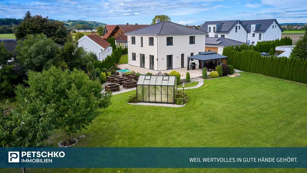 Beim Betreten des Hauses erfährt man sofort ein Gefühl von Ankommen. Und das hat auch seinen Grund: Das Haus wurde von der renomierten Firma Keilhofer in Massivholzbauweise errichtet und sorgt dafür, das in Ihrem neuen Zuhause ein äußerst angenehmes Wohnklima garantiert ist. Hochwertige Naturmaterialien wie Holz und Granit lösen sofort ein Gefühl der Geborgenheit aus.