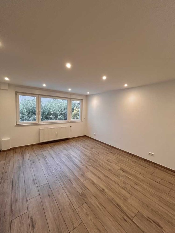 Die Oberflächen wirken modern und pflegeleicht: durchgängiger Boden in Holzoptik, LED-Deckenspots und glatte Wände. Im Flur bietet ein raumhoher Einbauschrank sehr viel Stauraum für Jacken, Schuhe und Haushaltsgeräte. Ein Kellerabteil gehört zur Wohnung. Beheizt wird über Fernwärme; Heizungsanlage und Warmwasseraufbereitung wurden 2023 vollständig erneuert.
