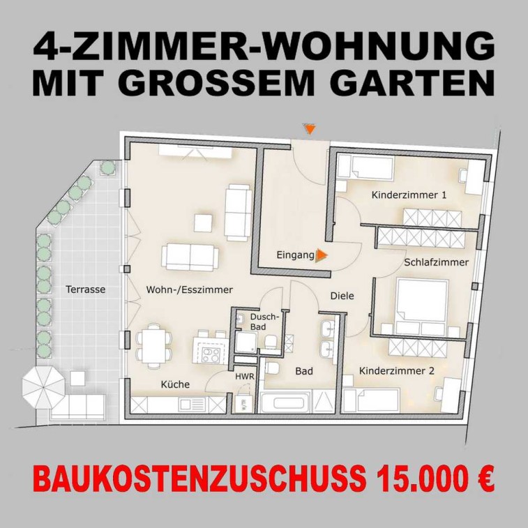 GROSSZÜGIGE 4-ZKB-WOHNUNG MIT SONNENTERRASSE UND GARTEN