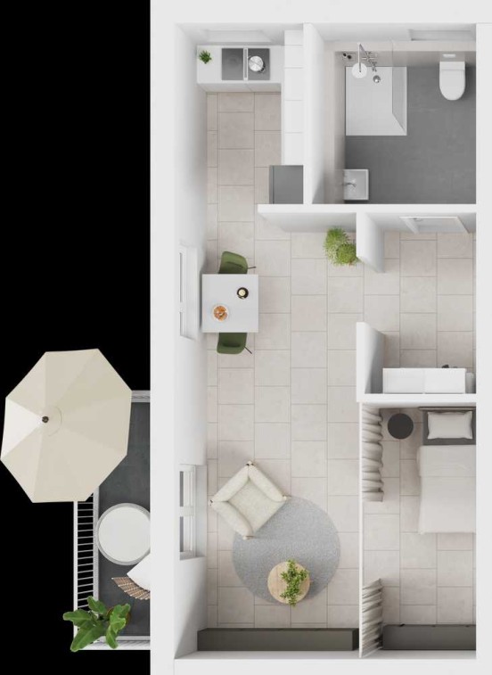Auf einer Wohnfläche von ca. 47 m² erwartet Sie ein durchdachtes Raumkonzept, das perfekt auf Singles oder Paare zugeschnitten ist. Der Fahrstuhl sorgt für einen bequemen Zugang zu allen Etagen und unterstreicht den modernen Wohnstandard.