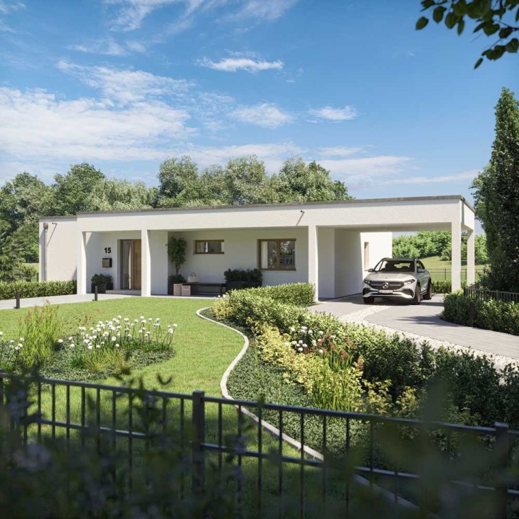 Das AMBIENCE 77 von Bien-Zenker ist mehr als nur ein Fertighaus - es ist Ihr persönlicher Rückzugsort, maßgeschneidert nach Ihren Wünschen und Vorstellungen. Mit einer durchdachten Wohnfläche von 77 m² und einer cleveren Aufteilung eignet sich dieser Bungalow ideal für zwei Personen, die das ebenerdige Wohnen schätzen. Die architektonische Vielfalt wird durch unterschiedliche Dachformen und Varianten wie das Querhaus oder den Übereck-Erker unterstrichen. Der offene Wohnbereich schafft eine helle und einladende Atmosphäre, in der Sie entspannen und Ihre Freizeit genießen können. Ein geräumiges Schlafzimmer mit Ankleidebereich bietet Ihnen den Komfort, den Sie verdienen, während das Badezimmer sowohl mit einer Dusche als auch einer Wanne ausgestattet ist - perfekt für entspannende Momente nach einem langen Tag. Kompakt geplant, passt sich der Bungalow problemlos jedem Grundstück an und verzichtet auf ein Untergeschoss, was Ihnen zusätzliche Freifläche verschafft.