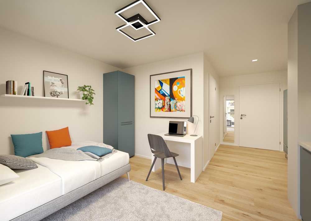 Hier steht eine kompakte 1-Zimmer-Wohnung mit einer Fläche von ca. 32,05 m² zum Verkauf. Die Wohnung und die gesamten Bauabschnitte werden bis Anfang 2027 fertiggestellt sein. Der Kaufpreis für diese Wohnung beträgt 307.520 €.