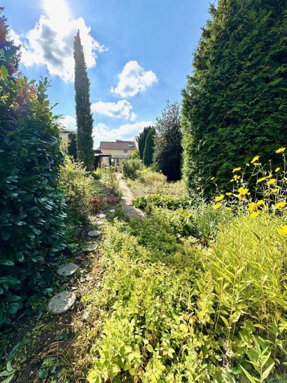 Der weitläufige Garten ist eine grüne Oase mit vielen Gestaltungsmöglichkeiten – perfekt für Familien, Gartenliebhaber oder entspannte Sommerabende.