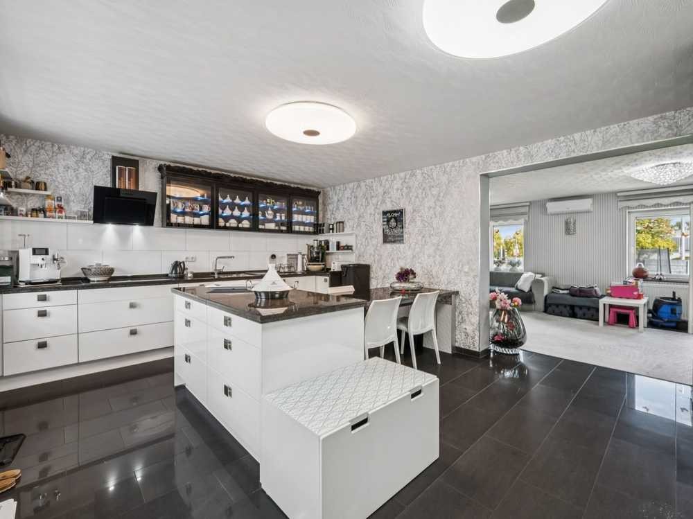 Das Herzstück des Hauses ist das großzügige, lichtdurchflutete Wohn- und Esszimmer mit offenem Küchenbereich. Hier genießen Sie viel Platz für gemeinsame Stunden mit Familie und Freunden. Große Fensterfronten sorgen für eine freundliche Atmosphäre und schaffen fließende Übergänge zum Außenbereich.